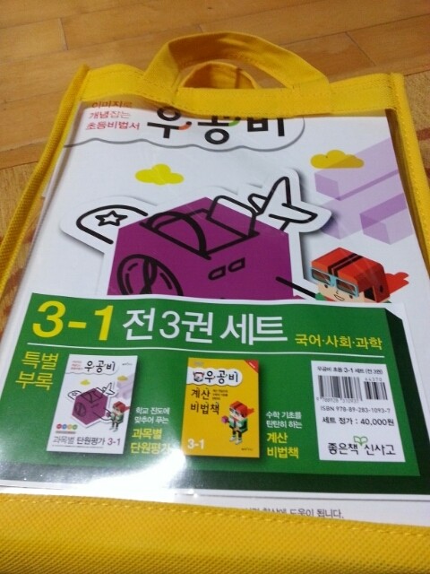 이렇게 노랑 가방에 담겨 온 우공비 국어, 사회, 과학 과 부록 세트.... 보기만 해도 든든하내요~~