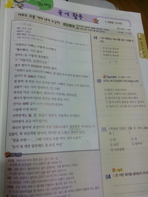 더해서 출제비중이 점점 늘어나는 서술형에 대비하여 교과연계에 충실한 것은 물론 국어의 경우엔 논술과 어휘력을 잡아주고, 사회의 경우엔 단원정리와 자료활용을 통한 확인학습을 도와주며, 과학의 경우엔 실험관찰풀이를 더하여 이해도를 높여주고 있어 갑자기 불어난 과목수에 학습교재까지 늘어나면 버거워 할 아이들에게 한권으로 충분한 우공비가 딱이다 싶내요.