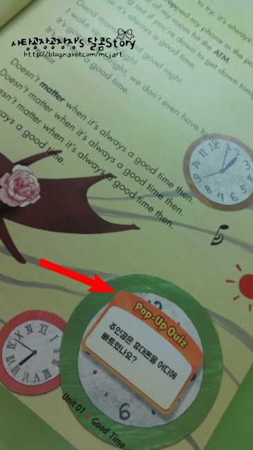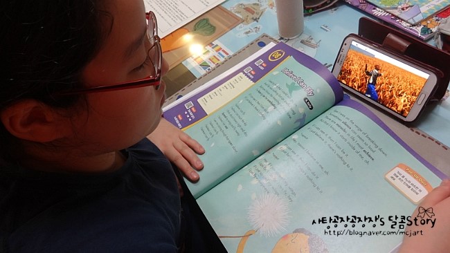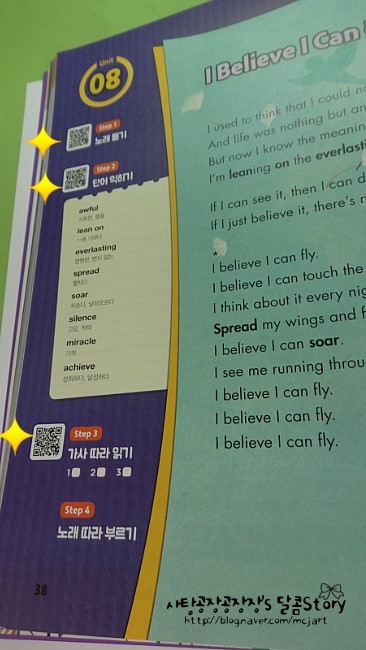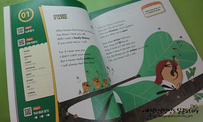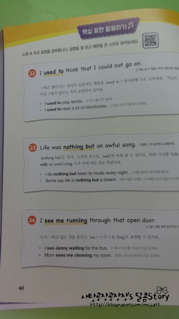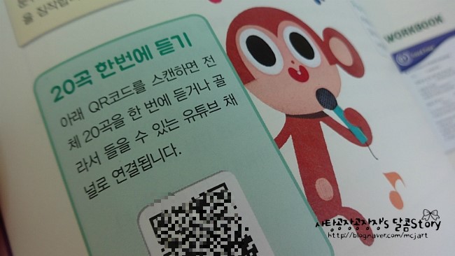 스마트한 세상이니 QR코드 활용해 각 각의 팝송 들을 수 있고 어휘학습도 도움 받아 좋은데