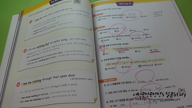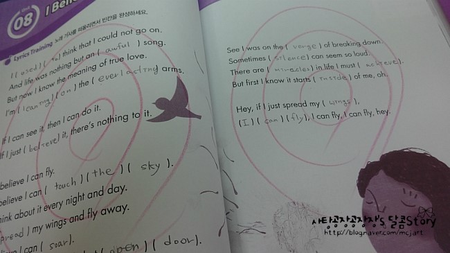 학습을 마치면 연습문제 풀고----> 워크북에 가사 쓰기까지 완료하면 좀 더 쉽고 재밌게 영어정복 할 수 있을거에요.