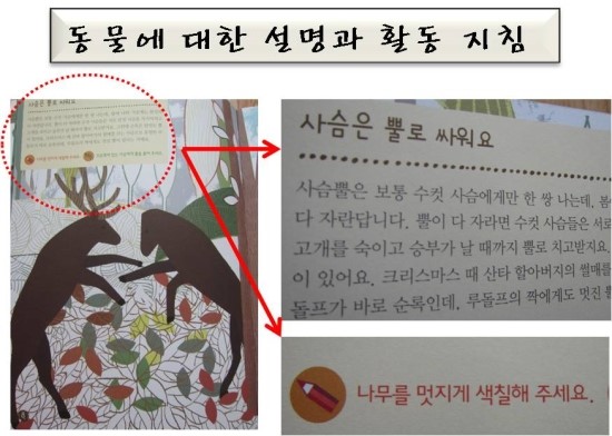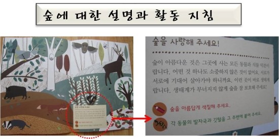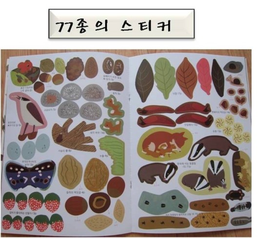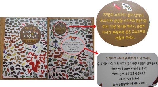 스티커북과 색칠공부와 자연의 스토리가 함께 결합해