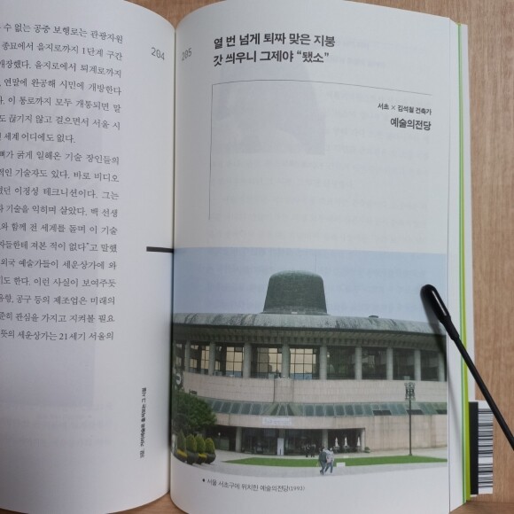 개인적으로 가장 흥미로웠던 부분은 거리예술로 훔쳐본 역사 이야기인데, 우리들이 대부분 다 아는 국립현대미술관, 세종문화회관, 예술의 전당, 세운상가, 국회의사당 의 설립배경과 관련된 정치적, 역사적 이야기가 아주 흥미롭다.