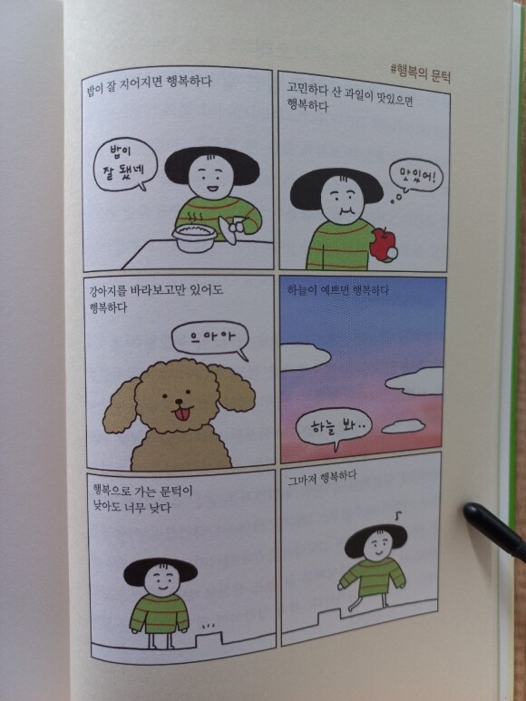 고민하다 산 과일이 맛있으면 행복하고, 하늘이 예쁘면 행복하고, 강아지를 바라만 보고 있어도 행복하고..