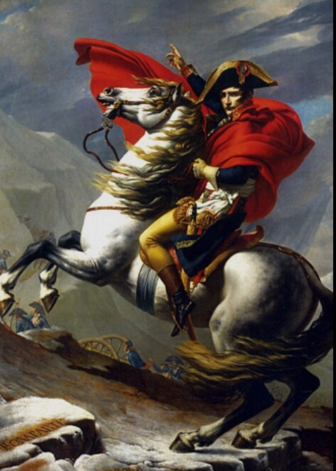 폴 들라로슈가 그린 < 알프스를 넘는 나폴레옹 > 이, 사실은 그 당시 상황을 사실적으로 표현한 그림이지만, 정말 이렇게 두 개의 그림을 놓고 보니, 같은 나폴레옹의 위엄이 하늘과 땅만큼 차이가 난다. 게다가 당나귀에 타고 있는 나폴레옹이라니 !!!