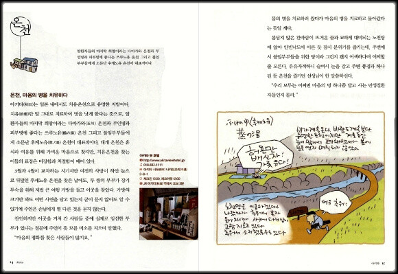일본의 온천과 관련된 일본만의 독특한 문화이야기도 재미나다. 일본의 유명온천들은 시간에 따라 남녀의 탕이 바뀌고 냉탕,한증막, 때밀이, 탈의실, 휴게실, TV 같은 것은 없다고 한다. 여러 다양한 시설을 갖추고 있는 우리나라와는 많은 차이를 보이고 있다. 어떻게 보면 소박하다고도 할 수 있고 온천의 진정한 맛을 한껏 누리게 하려는 뜻이 담겨 있는 것 같기도 하다.