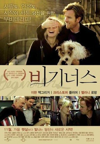 영화에 대한 느낌은 두 가지가 있다. 볼 때는 너무 재밌고 시간가는 줄 모르게 몰입되는데 보고 나면 금새 잊혀지는 영화. 볼 때는 그렇게 좋다는 느낌은 없고 그렇다고 아주 재미없지도 않고..그런데 다 보고나서 영화의 다양한 해석을 보면서 다시 곱씹게 되고 또 한번 본다면 그 진정한 맛을 느낄 수 있을 것 같은 영화. (볼 때도 재밌고 보고 나서도 기억에 오래 남는 영화는 물론 제외하고) 그런 면에서 본다면 [비기너스]는 나에게 있어서 후자에 속하는 영화이다. 그리고 사실 이 영화에서 가장 좋았던 건 배우들이다. 가을 분위기에 너무 잘 어울리는, 쓸쓸하면서도 따스한 눈빛을 담고 있는 이완 맥그리거(올리버). 이 영화에서는 특히나 그런 이미지가 아주 잘 녹아나고 있다. 그다지 부부의 정이 돈독하지 않았던 부모밑에서 자라고, 어른이 되어서도 엄마에 대한 쓸쓸한 기억을 떨쳐내지 못하는 올리버. 암선고를 받고 게이생활을 하는 아버지곁에서 마지막까지 살뜰히 보살펴 주는 한편으로는 그러한 아버지의 모습을 보면서 자꾸만 떠오르는, 어릴 때 기억속의 엄마에 대한 아련한 모습이 회상식으로 등장하게 된다. 이러한 부모의 영향 때문인지 누군가를 사랑한다는 것에 대해 크나큰 믿음도 없고 항상 사랑하는 사람을 스스로 떠나보낸다. 멜라니 로랑.(애나) 어디서 봤더라..계속 생각하면서 그녀의 아름다움에 매료되어버렸는데 나중에 찾아보니 영화 [ 더 콘서트 ]에 나왔었다. 아~맞다, 그 때도 참 예쁘다고 생각했었는데 이번에는 그 매력이 한층 더한 듯하다. 한 곳에 정착하지 못하는 자유분방한 그녀. 올리버를 너무도 사랑하지만 온전히 그에게만 속해지는것이 불안한 그녀이다. 아~이럴 때 남자가 강하게 확 잡아주면 좋을 것을..그녀만큼이나 자신의 사랑에 확신을 갖지 못하는 올리버이기에 이 둘의 사랑은 잠시 이별을 고하게 된다. 이 영화에서는 두 사람의 사랑이 메인이고 아버지는 조연일까 싶었는데, 두 주인공 못지않게 강한 인상을 남긴 크리스토퍼 플러머(할). 내가 너무도 사랑하는 영화 '사운드 오브 뮤직'에서 완전 나를 매료시켰던 그 잘생긴 대령. 비록 세월이 너무 많이 흘러버려 그 때의 모습은 찾아보기 힘들지만 그만이 표현해낼 수 있는 연기의 색깔..너무 멋지다. 75살 시한부 인생의 선고를 받고. 비로소 자신의 삶을 찾고자 노력하는 아버지 할. 다행히 그의 게이성향을 이해해주는 아들이 곁에 있어 참 행복한 노년을 맞을 수 있지 않았나 싶다. 게이로써 사랑하는 사람을 찾고 게이생활을 하고.비록 그것이 무엇이 되었든지간에 뒤늦게나마 자신의 진정한 행복을 찾는다는 것은 참으로 행복한 일인듯 싶다. 아들과 책방에도 가고. 파티도 자주 열고. 게이애인도 자주 찾아와주고.. 아 참. 이 영화에서 빼놓을 수 없는 또 하나의 배우. 바로 올리버의 애완견. 그런 애완견 하나 있으면 정말 맘속까지 다 터놓고 든든할 것 같다. 그리고 나는 영화를 볼 떄 포스터를 참 눈여겨 보는 편인데 우리나라와 외국 포스터의 이미지의 분위기가 아주 다르다. 같은 영화라 해도 포스터에 따라 이렇게 느낌이 다를 수가 있다는 사실. 영화를 보고 난 후에도 그런 생각이 든다. 그렇지만 양쪽 다 특색 있고 맘에 들어~ 영화속에서는 올리버가 그림을 그리는 장면이 등장한다. 그의 진짜 실력인가 싶어 깜짝 놀랐는데 알고 보니 그 작품도 감독의 실제 그림실력이고. 이 영화 자체도 감독의 아버지의 삶을 재조명한 것이라고 한다. 누구나 새로운 것을 시작하는 것은 참 힘들겠지만, 특히나 이 영화의 주인공처럼 어릴 때 각자의 사연으로 인해 마음속에 무언가 깊은 상처나 안좋은 기억이 자리하고 있다면, 거기에서 벗어나기란 더 힘들 것 같다. 영화속 올리버도 그렇고, 애나도 그렇고..그렇지만 할처럼 그렇게 뒤늦게 인생의 참다운 맛을 느끼기 전에. 지금 내 앞의 진정한 사랑을 놓치지 않는 용기가 주인공들에게 절실히 필요할 듯 하다. 이렇게 리뷰를 쓰는 중간중간 영화의 장면이 다시 생각나고 꼭 다시 한번 보고 싶어지는 영화이다.