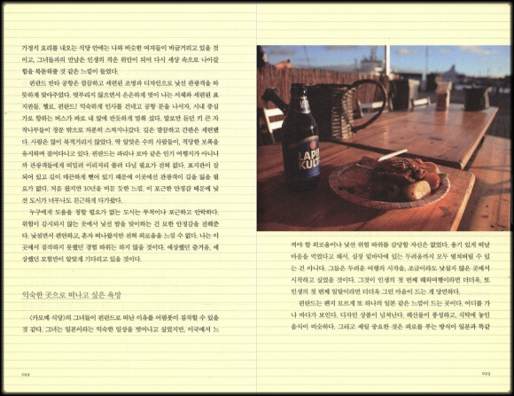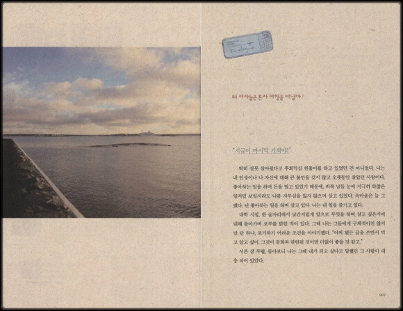 꼭 보고야 말겠다고 해놓고 여지껏 보지 못한 영화중 하나가 카모메 식당이기에 이 이름만 봐도 눈이 번쩍 뜨인다. 그런데 카모메 식당의 여자들 이라는 제목을 처음 봤을 때는 반가운 마음은 잠시.목차와 소개를 보니 웬지 그 유명세를 타고 씌여진 작품일 것 같아 그다지 끌리지가 않았었다. 이미 유명해진 어떤 것을 본따 만든 제목도 그다지 좋아하지 않기에.. 그런데 주변분들이 다 좋다고 추천을 하셔서 뒤늦게 관심을 갖게 되었고 드디어 이번 주말에 이 책과의 만남을 가졌는데..일단 책의 첫느낌이 상당히 좋다. 안의 내용도 꽤 예쁘고 아기자기한.내가 좋아하는 분위기. 그냥 패스했으면 후회할 뻔 했겠는걸...안도의 숨도 내쉬면서 그렇게 한 장 한 장 이 책속의 여자들과 만나기 시작했다. 다른 사람의 인생을 엿본다는 것은 꽤 흥미롭다. 특히나 이 책의 주인공들처럼, 자신의 인생관도 뚜렷하고 개성넘치는 인생이야기를 접하다보면 내가 못하는 부분을 이루는 그들이 부럽기도 하고 대단하다는 생각도 든다. 카모메 식당의 9명의 여성손님들은 30대를 전후해서 하나같이 극과 극의 인생을 살아가고 있다. 이 가운데서 나는 반가운 손님도 만나게 되는데 바로 몇달 전인가 쿠바남자와 결혼한 이야기의 다큐영화의 주인공이자 감독인 정호현씨, 그리고 몇년 전 참 재밌고 마지막이 슬펐던 터키여행기의 저자 미노 씨이다. 이 책에서 다시 만나니 웬지 더 친근감이 느껴지고 그들의 삶이 더욱 궁금해진다. 늦은 시작은 없다고 하지만 이 9명의 여성들처럼 전혀 새로운 길로 들어서기까지는 많은 갈등과 고민도 겪었을 듯 싶다. 나도 회사생활 20년동안 다람쥐 쳇바퀴 돌듯 똑같은 일상의 반복이었지만 이들처럼 나의 생활에 대해 고민해본적이 거의 없었던 것 같다. 아니 고민을 했었어도 현실을 박차고 나올 용기가 없었던 것일까., 아님 내가 진정으로 하고 싶은 것이 무엇인지조차 몰랐던 걸까.. 이 책을 읽으니 영화 카모메 식당이 더 보고 싶어진다. 이 책은 여유로운 시간에 커피 한 잔 마시며 읽으면 너무 좋을 책이다. 아마도 자신의 삶과 미래에 대해 생각해보는 시간을 가지게 되지 않을까.. [ 이 서평은 출판사로부터 무료로 제공받은 도서를 읽고 작성하였습니다. ]