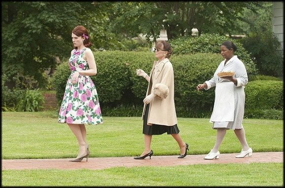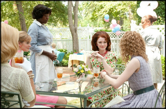 인종차별. 특히나 미국내의 흑인인종차별에 관련된 가장 충격적인 영화는 뭐니뭐니해도 "뿌리"이다. 그 때의 그 끔찍했던 기억은 그 후 흑인들을 볼 때마다 항상 마음속에 답답함이 자리하곤 했는데..이번에는 흑인 가정부에 대한 백인들의 차별에 관한 이야기이다. 그런데 어찌 이렇게 밝고 유쾌하게 표현할 수 있는지.. 일단 포스터부터 이 영화의 분위기를 단번에 느끼게 해준다. 그리고 그녀들의 아슬아슬한 반란이 세상을 바꾼다.라는 포스터 문구를 보면서 그녀들의 반란은 무엇일까..새삼 궁금해진다. 이 영화의 시대적 배경은 1963년. 그 시대의 미국내에 어느 정도의 흑인차별이 존재했는지 이 영화를 보면서 아주 잘 알 수 있게 되었는데, 백인주인들은 흑인가정부와는 화장실도 같이 쓰는 것을 절대적으로 꺼리면서 어떻게 자신들의 어린 자녀들은 흑인손에 맡길 수가 있었던건지.. 형편없는 월급에 주어진 일은 너무 많다. 청소,빨래,식사, 장보기 거기다 가장 주된 일 중의 하나인 백인아이 돌보기. 이러한 육체적인 고됨보다 그녀들을 가장 힘들게 하는 것은 바로 자신들에 대한 차별이다. 하나의 인격체로 보는 것이 아니라 하나의 물건으로 취급한다. 주인의 유언에 따라 다른 주인에게 넘겨지는..예전 노예제도와 다를 바가 없다. 그러나 절대 대들지 말 것. 어떠한 말대꾸도 하지 말 것..흑인 가정부들 사이에서 암암리에 지켜지고 있는 절대적 규칙이다. 자칫하면 일자리도 없어지고 당장 금전적 부분의 현실과 연결지어지는 만큼 그녀들은 어떠한 굴욕도 참고 견딘다. 그러나 그녀들의 내면에 꿈틀거리고 있는 자존감이 조금씩 고개를 들게 되는 일이 생기게 되는데.. 그 시대의 일반적인 백인여성들과는 달리(돈 많은 부자집 남자와의 결혼. 가정부를 두고 편하게 사는 삶) 자신을 치장하고 결혼생활로 안주하는 대신, 직업여성의 길을 걷게 되는 스키터 . 신문사에 취직하고 칼럼을 쓰게 된 그녀는 지금까지와는 다른 시선에서의 글을 쓰고자 한다. 바로 흑인가정부 입장에서 바라보는 가정부의 삶이다. 그러나 주인에게 잘못 보이는 것이 두려운 가정부들은 일체 어떠한 정보도 제공하지 않고 용감한 두 여자만이 이에 동참하게 된다. 17명의 백인아이들을 키우며 정작 자신의 아들은 백인들에 의해 죽을 수 밖에 없었던 아픔을 지닌 '에이빌린'. 그리고 주인집 화장실을 썼다는 이유만으로 내쫓기게 된 '미니' 이 두 가정부의 용기에 힘이 더해져 점차로 흑인가정부들 사이에 일대 반란이 일어나게 된다. 백인이면서도 흑인의 입장에서 그들을 이해하고 옹호해 주려고 노력하는 주인공 스키터의 용기도 대단하다. 그녀는 흑인백인을 떠나서 자신을 어릴 때부터 몇십년간 엄마대신 키워준 흑인유모겸 가정부에게 말할 수 없는 사랑을 가지고 있었기에 그러한 용기가 더욱 절실했던 것 같다. 당차고 똑똑한 스키터와는 다른 분류의 백인이긴 하지만, 또래 백인친구들에게 왕따를 당하고 외롭게 살아가는 백치미인듯하면서도 순수하게 느껴지는 셀리아의 모습을 보는 재미도 남다르다. 처음 맞아보는 흑인가정부(미나)에게 여러가지로 의지하며 밥도 같은 식탁에서 아무렇지도 않게 먹는 셀리나이다. 그녀의 남편이 알면 어쩌나 나중에 어떤 일이 터지려나 걱정도 됐는데 웬걸..너무 멋진 남편이 등장한다. 굉장히 우울하고 마음 아픈 소재임에는 분명한데 이 영화는 시종일관 밝고 유쾌하게 진행된다. 영화속에서 정원을 가꾸는 흑인남자의 모습도 잠깐 비추긴 하지만 이 영화는 순전히 여자들 이야기이다. 화려하고 아름다운 드레스와 시시때때로 모여서 식사하고 카드놀이를 일삼는 그 시대 여성들의 모습과 가치관도 엿볼 수 있는데 전체적으로 코믹스런 장면도 적절히 섞이고 장면장면도 예쁜 색깔이라 보고 나니 기분이 쿨~해진다. 원작소설도 꼭 읽어보고 싶게 만드네~