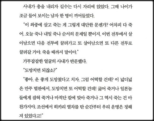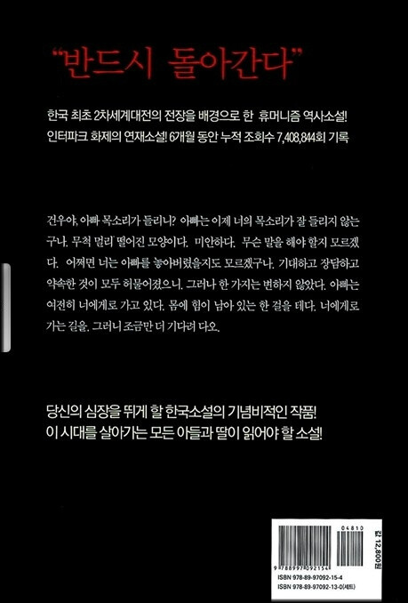 이 시대의 이야기를 다룬 책은 참 많이 읽어봤고 읽을 때마다 매번 마음이 아프고 가슴이 먹먹했는데 특히 이번 아버지의 길 은 홀로 남겨두고 온 아들을 그리워하는 아버지의 애절한 마음이 더해져 그 슬픔이 배가 되는 것 같다. 이 책은 독립운동을 위해 어린 아들과 남편 곁을 떠난 월화보다(물론 2편에서 보여지는 그녀의 모성애도 무척 강하긴 하지만) 아버지 길수의 부성애가 훨씬 더 사람 마음을 울리고 있다. 길수는 1편에서보다 더 기구한 인생을 살게 되고 어린 영수는 도저히 감당할 수 없는 몸과 마음의 상처를 안고 피폐해져간다. 1편에서 삶의 희망을 안고 입대했던 짜즈보이도, 오로지 명선아씨의 안전만을 바래왔던 정대도..모두 전쟁의 희생양이다. 일본군에게 철저히 농락당하는 위안부소녀들의 삶 또한 너무 비참하다. 명선아씨도..월화도 결국은 다 이유도 모르는 전쟁의 희생양이다. 일본군에 징집되어 싸우다 소련군의 포로로 잡히게 되고 길수의 끈질긴 생명력으로 수많은 전쟁터에서 살아남으며 고국으로 돌아갈 실낱같은 희망이 보일 듯 보일 듯 하나 결코 쉽지만은 않다. 그리고 고국과는 더 멀리 떨어진..도저히 탈출해서 걸어서는 돌아갈 수 없는 머나먼 나라 미국으로 끌려가게 된다. 결국 길수는 그렇게 소망하고 그리워하던 아들 건우와 재회를 할 수 있게 될까... 사람의 인생이 이렇게 파란만장할 수도 있구나..철저하게 소설이라면 그저 소설이라고 치부하고 읽고 끝낼 수도 있을텐데 이 소설은 엄연히 실화를 바탕으로 하고 있다. 이 소설이 현재 장동건 주연으로 [마이웨이]라는 제목으로 영화제작중이라고 하는데 우리의 마음을 울릴 영화가 될 듯 하다. 지금까지의 이재익 작가의 작품세계와는 전혀 다른 색깔같지만 나에게는 첫작품이니 비교할 여지는 없고 첫 느낌이 좋다. 다른 분위기의 그의 소설은 어떨지 새삼 궁금해진다. [ 해당 서평은 출판사로부터 제공받은 도서를 읽고 작성하였습니다]