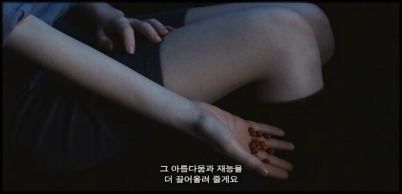 포스터가 굉장히 사람을 매료시키는..그리고 널 데려가줄께..깨지 않을 꿈 속으로..포스터 문구도 이 영화에 대해 굉장한 상상력을 불러일으킨다. 아~그런데 이 영화 어떻게 설명하면 좋을까.. 삼류에로영화라고 하기에도 좀 그렇고 수준높은 감각에로영화는 더더욱 아닌 것 같고.. 분명한 건... 상상했던 영화와는 전혀 다르다는 사실이다. 여대생 루시는 집세며 학비며 턱없이 부족한 상황에서 돈이 되는 거라면 뭐든지 서슴치 않고 하는데, 루시가 하는 행동에서는 살기 위해 가리지 않고 열심히 돈벌이를 하는,생활력 강한 일반 대학생과는 조금 다른 차원의 느낌이 든다. 일단 루시라는 인물 자체가 지극히 정상적이라는 생각이 들지를 않는 것이 결혼하자는 말을 아무때나 아무 남자(물론 자신과 관계되는 남자들이지만) 에게 던지고, 굉장히 문란해보이고..한마디로 종잡을 수 없는 인물로 느껴진다. 그런 그녀에게 섹슈얼파티 에서의 서빙 아르바이트 또한 그저 좀 더 큰 돈을 벌기 위한 수단일뿐. 조금의 망설임도 없다. 상류층 사람들의 식사에 란제리만 입고 서빙을 보는 섹슈얼파티. 다른 여종업원은 루시보다 더 자극적인 의상을 착용한다. 검은색 의상의 그녀들 사이에서 백옥같이 하얀 피부에 하얀 란제리를 입은 루시가 굉장히 두드러져 보이는 장면이다. 거기에 더해 이제는 상류층 남자들의 성욕을 해소해주는 일을 하게 된다. 아마도 더 많은 돈을 받게 되는 아르바이트인듯. 루시가 약을 먹고 죽은 듯이 잠자는 사이, 나이 들어 발기부전 혹은 성적으로 크게 만족을 얻지 못하는 귀족노인들은 그녀를 자기 마음대로 가지고 논다. 절대 '삽입'은 해서는 안 된다는 규칙만 지킨다면 그 어떠한 행동도 괜찮다. 그 밀실에는 잠자는 루시와 노인본인외에는 그 어느 누구도 없으니까.. 영화 중반까지는 섹슈얼 파티 뭐 그런 세계도 있을 수 있다고 생각했다. 그런데 막판으로 갈수록 노출은 점점 심해지고 급기야는 밀실에서는 루시와 노인의 나체가 고스란히 노출되는 장면도 많고, 특히나 마지막 몇 초(몇 분인가?) 의 그 몰래카메라속 장면에서는 사람을 굉장히 황당하게 만들면서 끝나버린다. 어떻게 보면 굉장히 단순한 내용임에도 불구하고 장면장면에서 전혀 이해할 수 없는 장면들이 굉장히 많이 끼어든다. 그것도 자연스럽게 연결되는 것이 아니라 마치 단편영화를 보는듯이 장면장면이 갑자기 끊겨버리는 느낌. 최근에..아니 올해 본 영화 중 가장 이해하기 힘들고 설명하기도 힘든 영화이다. 영화소개와는 전혀 다른 느낌의 영화이다. 그래도 주인공 루시(에밀리 브라우닝)가 굉장히 매적이라는 사실 하나만큼은 이 영화를 통해서 아주 강하게 전달되었다. 이런 영화를 찍은 것 자체도 대단하고. 그리고 세상 어느 곳에 분명 이런 밀실이 있을 것 같다는 생각도 든다. 하긴 돈많은 사람들에게는 우리같이 시민들은 상상할 수도 없는 세계가 존재할 테니까..