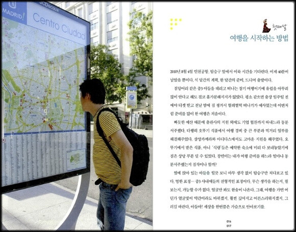 일단, 이런 여행을 계획한 저자의 결단에 큰 박수를 보내고 싶다. 아들이 더 커버려서 아예 대화의 길이 막히기 전에 이렇게 둘만의 기나긴 여행길을 떠난다는 것은 참으로 멋진 시도임에 틀림없다.