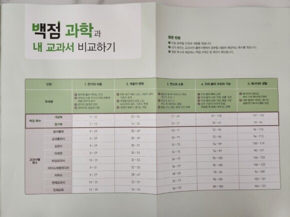 저희는 백점 과학에 나와있는 학습 계획표를 참고하여