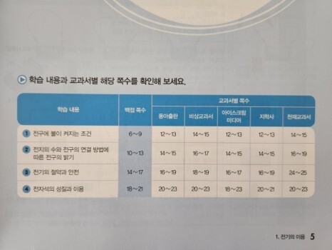 교과서 출판사마다 페이지 수가 나와있어