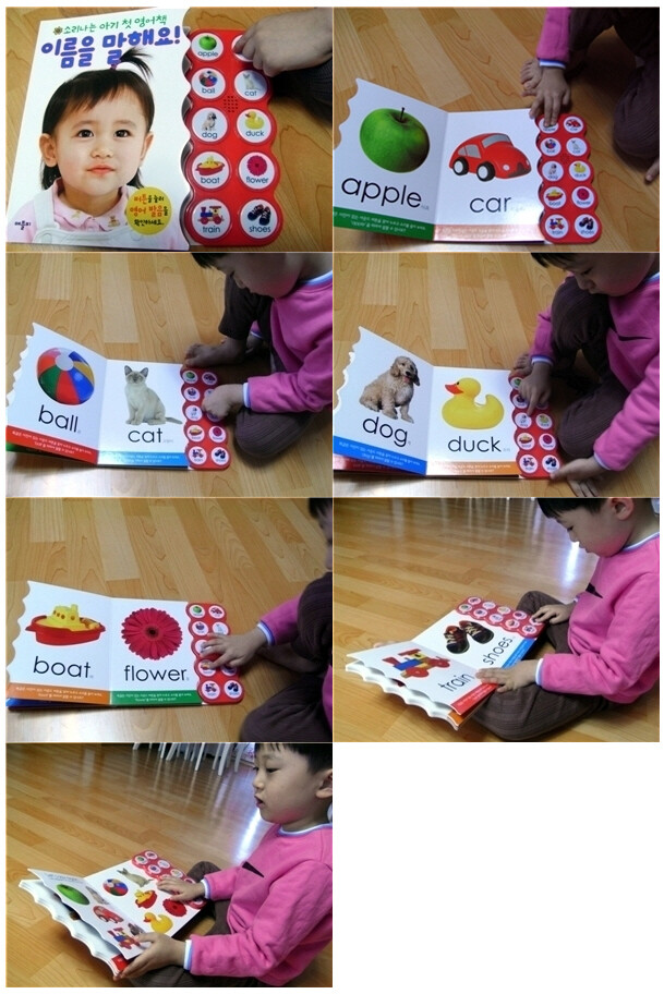 아주 튼튼하게 잘 만들어져,, 아기들이 눌러대도,,버튼이 고장날 것 같지는 않다. 그래서 더욱 맘에 드는 애플비 영어책이다.