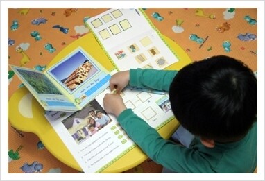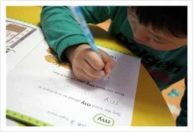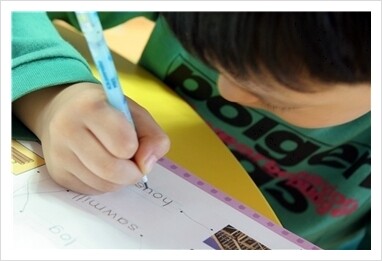 아이가 열심히 단어를 따라 쓰는 중이네요.