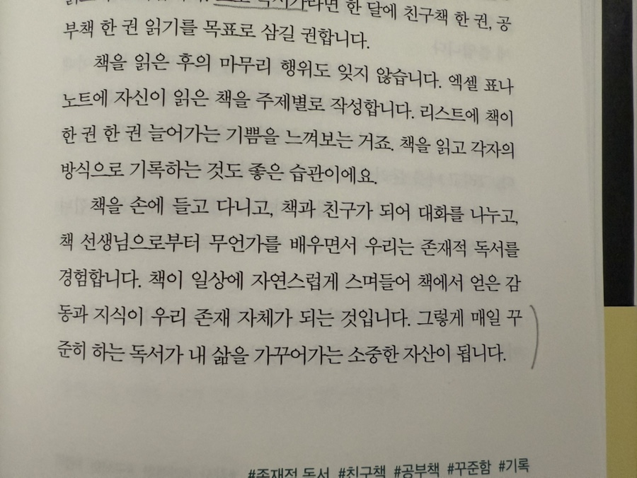 독서의 양과 깊이가 부족하지만 책을 읽다 보면 성장할 수 있으리란 믿음을 던져줘서 고맙다.