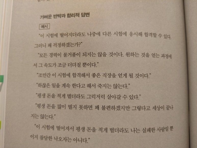 "극도로 부정적인 생각에 더 단호하게, 더 자주 이의를 제기하고 반박할수록 더 빠르고 완벽하게 그 생각을 없앨 수 있다. "