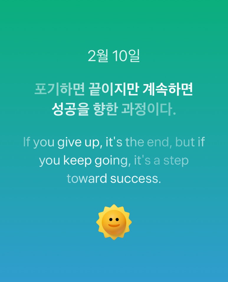 "포기하면 끝이지만 계속하면 성공을 향한 과정이다."