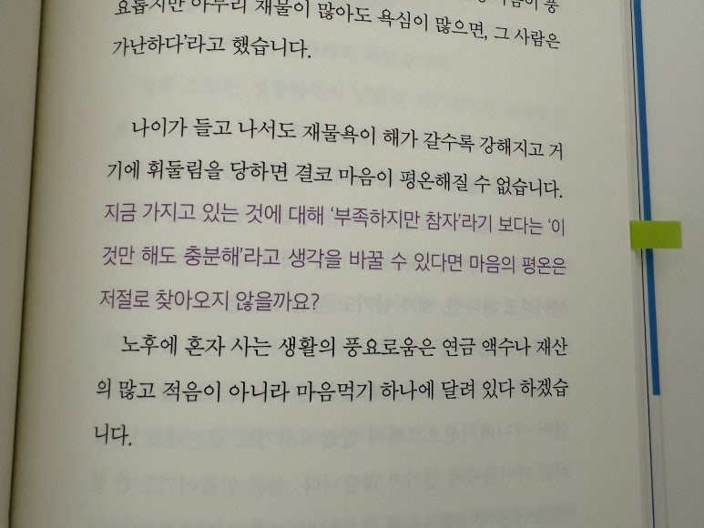 대단한 내용이 아닌 기본에 충실한 내용을 쉽고 간결하게 쓴 책이다. 알고 있다고 실행이 되는 것은 아니니 노후에 혼자 사는 노하우가 필요하다면 읽어볼 만하다.