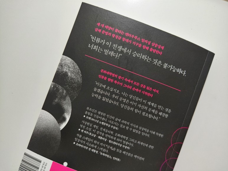삼체의 표지답게 3중 항성계가 표지를 장식하고 있다.