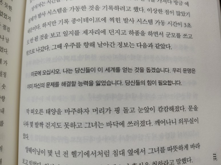 "작품 스케일이 워낙 커서 삼체를 읽을 때만큼은 백악관의 일상사가 사소하게 느껴졌다."