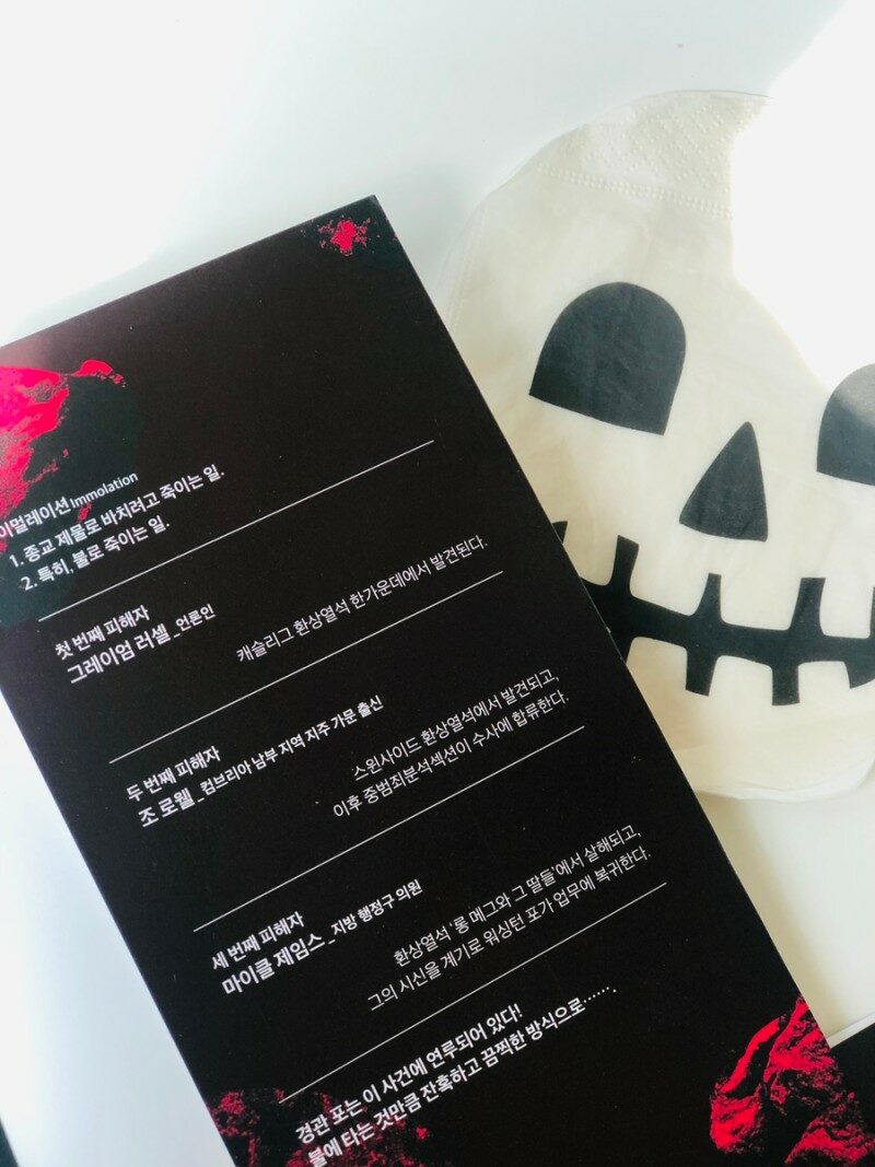그리고 세월이 흘러 환상 열석위에 끔찍한 방법으로 죽음을 당한 살인이 시작된다.