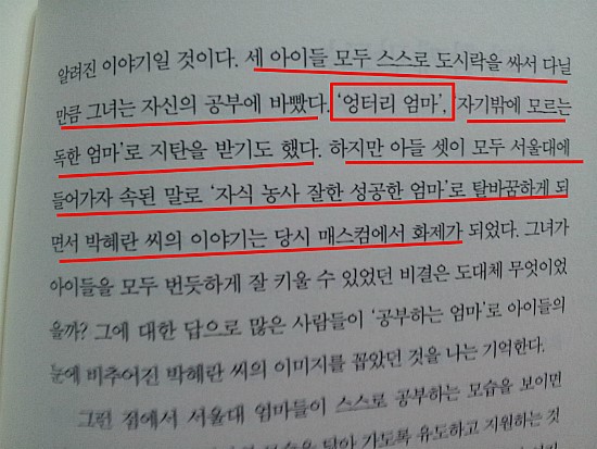 이 책에서 제일 마음에 와 닿는 부분은 엄마가 공부하는 모습을 보여 주는 것입니다.