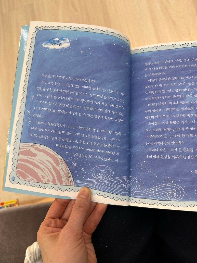 책 마지막 부분에는 책 주인공이 환경 운동을 실천하고자 지구별 환경 수호대라는 동아리를 만든다. 동아리에 모인 세 친구는 첫 환경 운동으로 ‘플로깅’을 하기로 하는데...