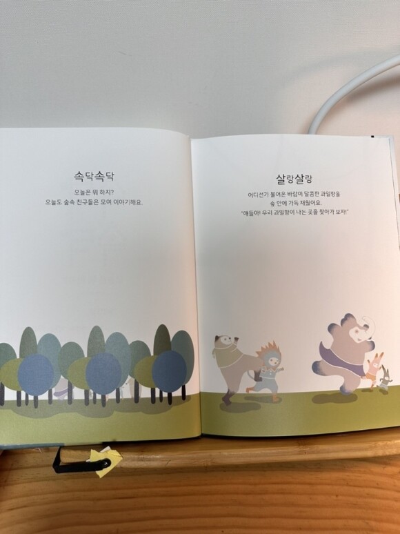 이 책은 많은 의성어,의태어가 리듬감있게 표현되었어요.