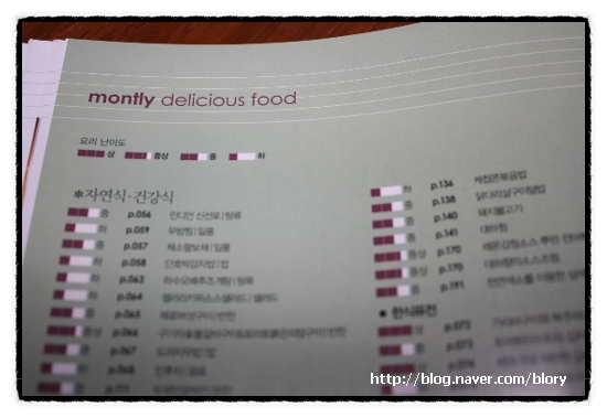 구성해 놓았고, 또한 페이지를 목록에 같이 써줌으로서 그 요리를 찾기위해 잡지 한페이지 한페이지를