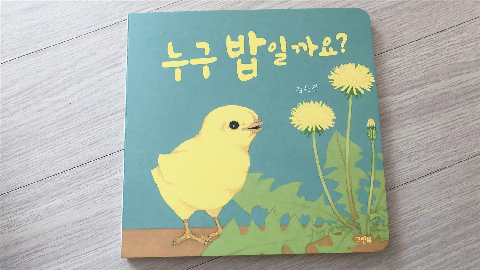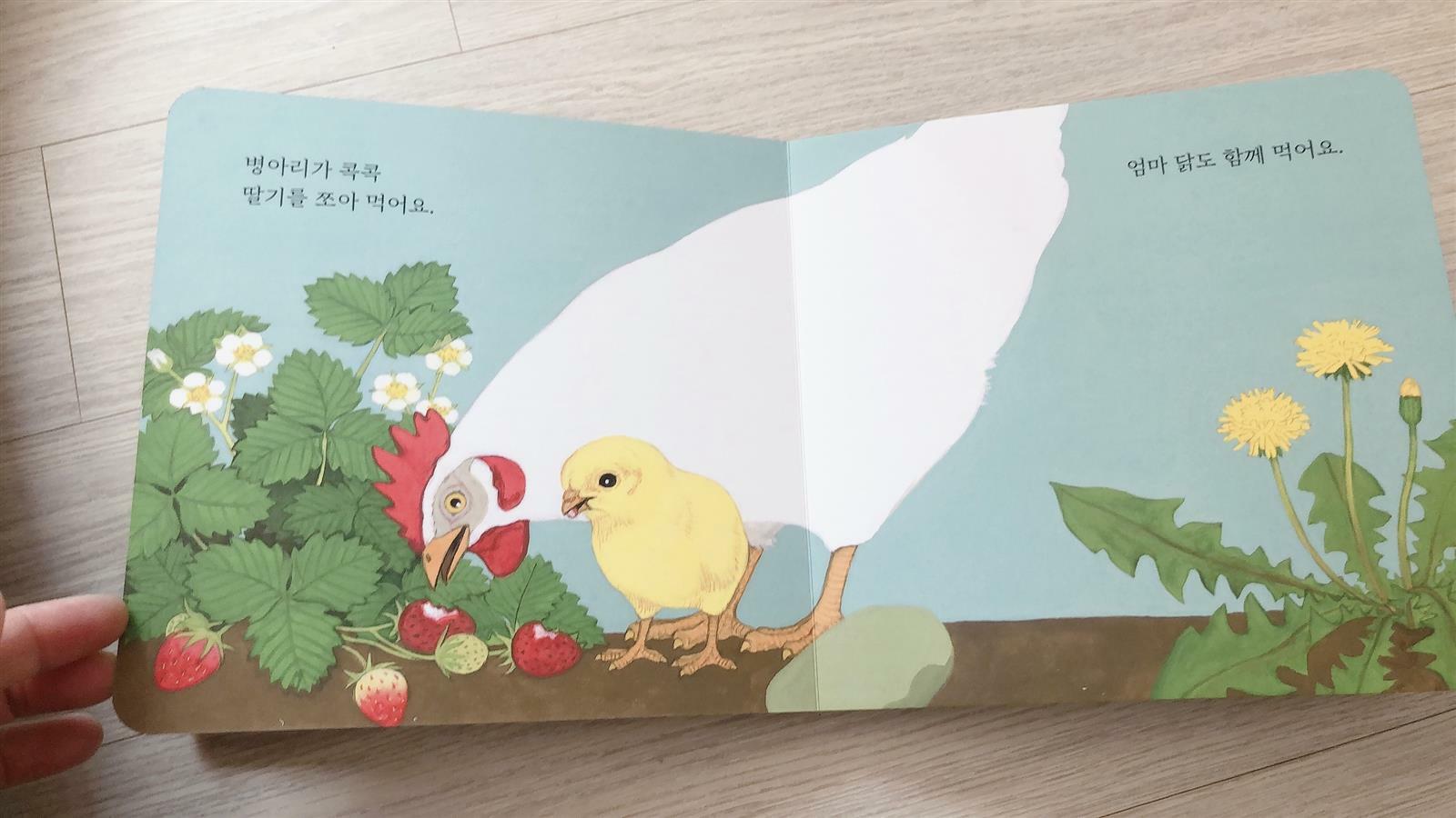 누구 밥일까요? 노란 병아리와 노란 민들레가 피어 있는 책표지를 보자마자 읽어야 겠다고 생각을 했나봐요. 엄마, 무슨 밥일까?? 이거 읽어죠!! 오잉?? 무슨 말이지?? 우리 꼬맹이는 한글 떼기를 하지 않았고 이제야 자기 이름을 알아보고 따라 그리는 정도랍니다. 누구한테 들은걸까요?? 제목을 제법 비슷하게 읽었네요. ㅎㅎ 그러고 보니 뒷쪽 표지에 이뿐 도시락이 그려진걸 보고 자기가 한말이래요. 제목을 제대로 읽어 주었어요. “누구 밥일까요?” 표지에 나와 있는 노랑 병아리를 보고 우리집에도 병아리 있었잖아. 합니다. 네 저희집에 한달 반 전에 병아리가 있었죠^^ 지금은 청소년닭이 되었지만 말이예요. 일주일 키우고 시골집에 데려다 준 병아리는 벌써 이렇게 컸다고 보여주니 “알아!나도 봤어.” 그래!! 안다니 넘어가자. 아이들과 책을 읽다 보면 첫장부터 진도를 나가지 못하고 계속 다른 이야기를 할때가 많죠. 그래도 참고 끊으면 안된다고 하더군요. 책을 끝까지 읽는게 목적이 아니니깐요^^ 누구 밥이냐고 자꾸 질문하길래 혹시 먹이사슬 이야기인가?? 했는데 아니였어요. 토끼가 초끼풀을 먹고, 달팽이가 상추를 먹고 병아리가 딸기를 나비가 꽃에 꿀을.... 여러 다양한 동물새끼들의 식사시간에 대한것이 었어요. 그래서 제일 첫장에서 식사시간이라고 한것 같아요. 우리 꼬맹인 병아리가 딸기를 먹는것에 강한 의문을 가지더군요. 우리집에 있던 병아리들은 딸기를 먹은적이 없거든요. 매일 사료만 먹다가 시골집에서도 사료와 쌀,상추 먹는것만 봤으니 이해가 안되나봐요. 다음에 딸기를 줘보자고 하고 급 마무리 합니다. 서평이벤트에 당첨되어 도서를 무료로 제공 받았습니다