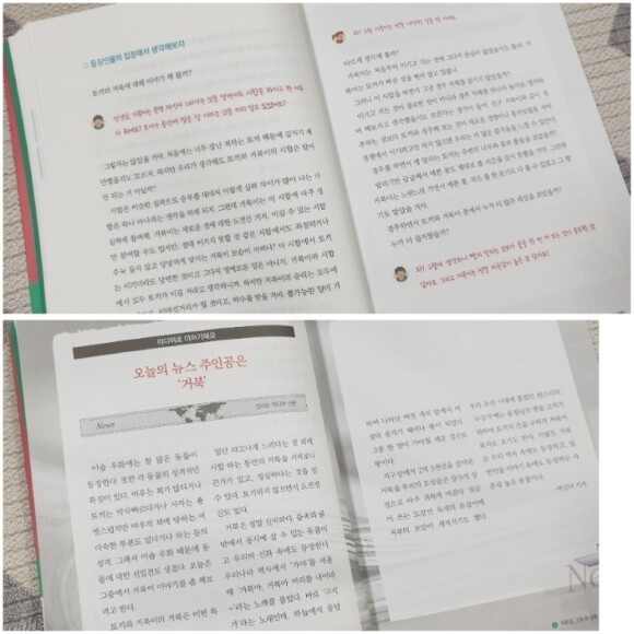 내용을 보면 마치 선생님과 아이가, 때론 책속 주인공들과 직접 대화하고 있는 듯 설명해주고 있는 특이한 방식의 책이었다. 주로 아이의 질문에 선생님이 명쾌한 답변을 해주고 있다.