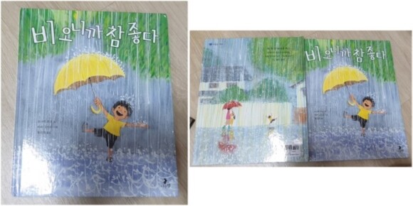 책 표지를 보니 비오는날 레인부츠 신고 놀았던 우리 아이들과의 추억이 떠오르네요. 어릴적엔 비와 노는것이 뭐가그리 좋은건지 우리 아이들도 예외가 되진 않았답니다. 비올때면 두 아이는 우비도 단단히 챙겨입고 우산에 레인부츠도 갖춰입고 바로 밖으로 향합니다. 얼마나 험하게 놀던지 완전 무장을 하고 빗속으로 보내놓아도 소용이 없이 흠뻣 젖어 집으로 들어오더라구요.
