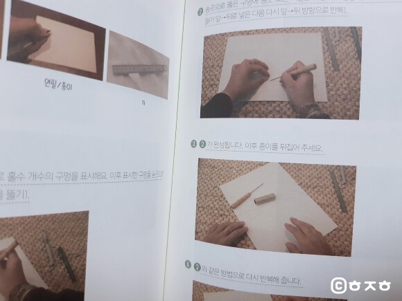 그리고 챕터 6에서는 직접 책을 만들어보는 과정이 사진과 함께 설명이 되어 있는데, 사진이 너무 어둡고 흐릿합니다. 복잡한 과정은 아니었지만, 보기에 좀 답답하게 느껴졌답니다.