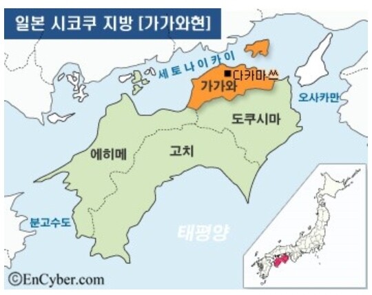 남서쪽에 있는 시코쿠 섬의 '다카마쓰시'이다. 다카마쓰는