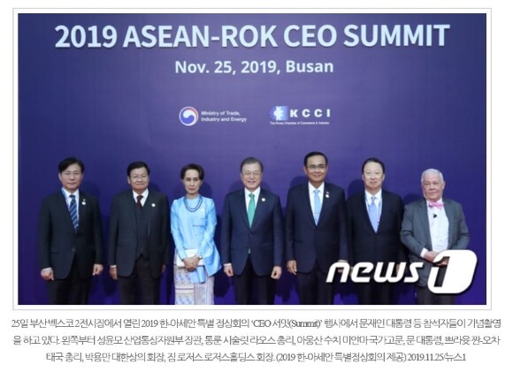 오늘 부산 벡스코에서는 문재인 대통령, 아웅산 수치 미얀마 국가고문, 오차 태국총리 등 한국과 아세안의 정상들이 모여 < 2019 한·아세안 특별 정상회의 >가 열리고 있다.