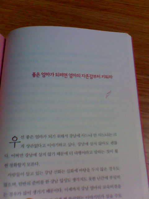 처음 1장과 2장을 읽으면서 그동안 제가 알고 있었던 아이를 쉴틈없이 학원으로 날라주면서 끼니도 대충 차에서 해결하면서 아이들의 주위를 맴도는 헬리콥터맘이 아닌 정말 이런 엄마들도 있구나 할 만큼 마음이 따뜻한 강남엄마들이 있다는 사실에 조금 놀랐어요.