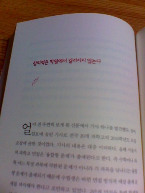 [강남 엄마 공부 7 습관]은 서문에서도 밝히고 있지만 강남에서 엄마들이 수학은 어떤 학원을 다니고 영어는 어떤식으로 공부하는지를 알려주는 책은 아니에요. (저도 처음에는 그런 학습법이 나와 있는 책인 줄 알았어요) [강남 엄마 공부 7 습관]은 기존에 강남 엄마들에 대한 일반적인 편견에 반하는 강남엄마들의 진가를 보여주면서 강남엄마들이 정말로 아이들에게 어떻게 하는지를 학교 교육현장에서 교사로서 보고 느낀 점을 이야기하고 있는 책이에요.
