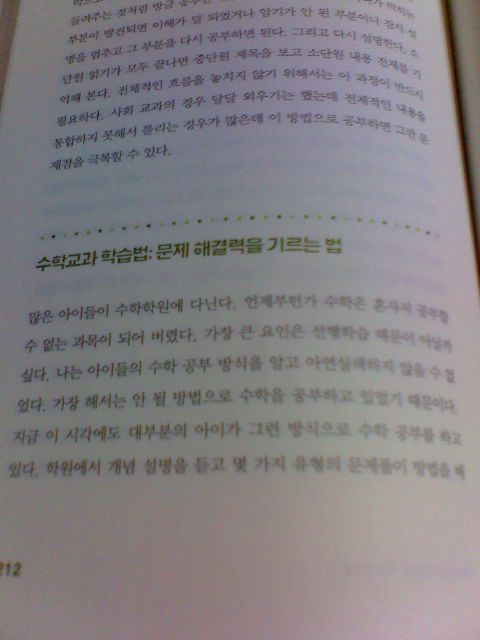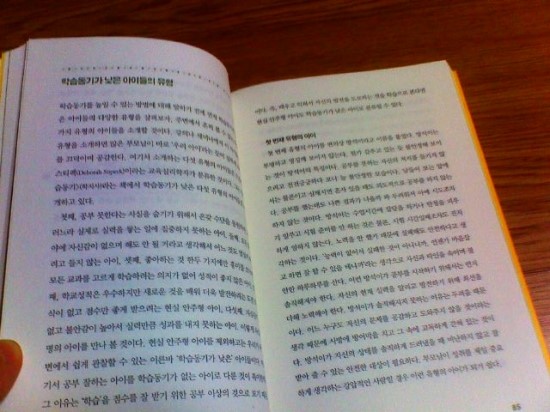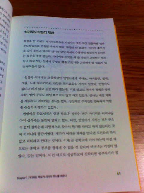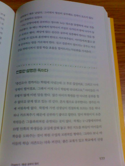 사실 제 딸이 초등학교 3학년인데 저도 아이를 학원 보내지 않고 집에서 매일 매일 일정 분량의 문제집을 풀게 하는 엄마주도학습을 하고 있는 입장(이 책의 내용의 주인공처럼 사교육을 많이 시키는 것과는 다르지만 엄마 주도학습이긴 해요) 인데 이 부분을 읽으면서 반성하는 부분이 많았어요.