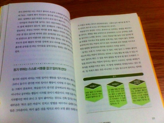 [우리 아이의 공부근육을 키워라]를 읽으면서 내가 정말 우리 아이에게 공부를 해야하고 잘 하고 싶은 동기를 부여할 기회를 주었는가 하는 반성을 해 보게 되더라구요. 그냥 집에 오면 당연히 문제집 풀고 자신이 좋아하는 일을 하게 하는데 공부에 대해 왜 공부를 해야 하는지에 대해 따로 생각할 시간을 주지 않고 그동안 많이 몰아부쳤다는 생각이 들더라구요. 아직은 3학년이고 여아라서 제가 조금만 소리 높이고 눈을 부릅뜨면 겁을 먹지만 몇년만 지나면 효력을 잃을 것 같더라구요. 그렇다면 지금부터라도 아이에게 자율권을 부여해 보는 것도 좋겠다는 생각을 많이 하게 되었어요.