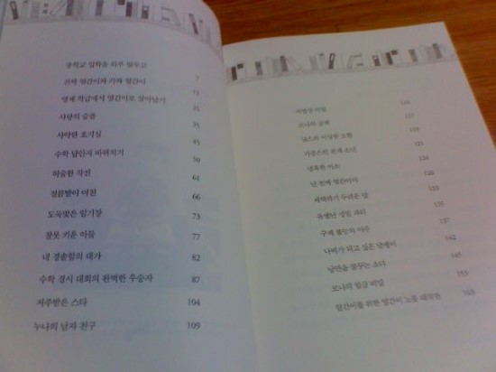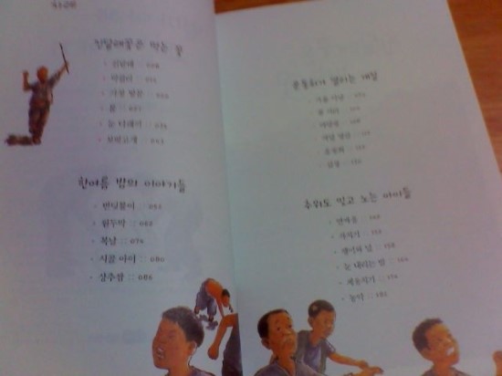 목차에요. 이야기는 봄, 여름, 가을, 겨울별로 어렸을 적 고향에서 일어나는 이야기들로 구성되어 있어요.