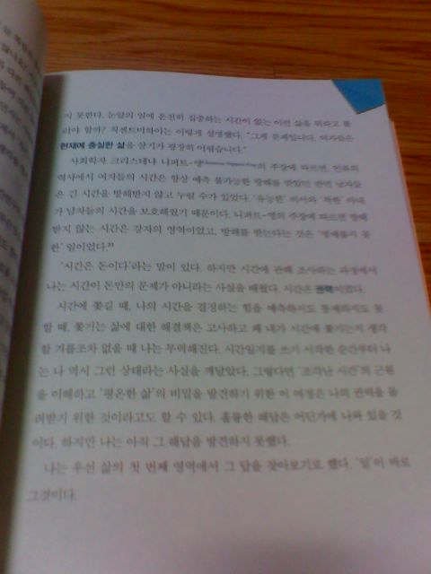 [타임 퓨어]를 읽으면서 그동안 제가 가지고 있던 엄마는 이렇게 해야 한다는 '이상적인 엄마'의 주술에서 조금은 벗어나야 나 스스로도 삶에서 여유를 가지고 아이에게도 여유롭게 대할 수 있겠다라는 생각을 하게 되었어요. 그리고 집안일에 대한 강박관념에서 조금은 벗어나도 되겠다는 생각이 들었어요. 제가 좀 완벽한 걸 좋아해서 직장에서 일을 하면서도 아이 공부 다 봐주고 간식 다 만들어서 먹일려고 하니 집안도 누가 와도 부끄럽지 않게 해 놓으려고 하는 삶을 살았는데 [타임 퓨어]를 읽으면서 이제는 좀 더 여유를 가질 수 있는 삶을 위해 좀 내려놓아야 겠다는 생각을 많이 하는 시간이 되었어요. 그리고 배우자 그리고 아이에게도 나의 삶에서 도움을 받을 수 있는 부분은 요구를 해야 겠다는 생각이 들더라구요.