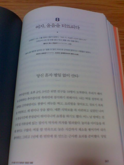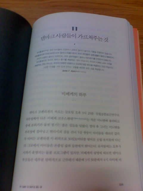 저자는 덴마크를 방문하면서 왜 덴마크 엄마들이 세상에서 가장 여가가 많은 엄마들이라는 사실을 눈으로 직접 보면서 알게 되요. 덴마크 사람들은 길게 일하기 보다는 집중해서 일을 하고 덴마크 남자들도 여자들처럼 똑같이 집안일과 육아를 책임지고 '휘게': 지금 이순간 에 충실한 삶을 살아가는 것이 행복으로 가는 길임을 보여주고 있어요.