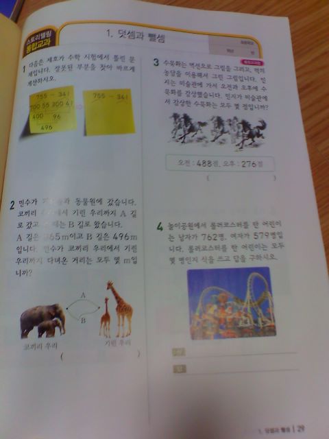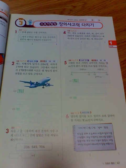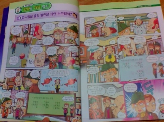 [스토리 텔링] 문제가 수록되어 있는데 실사 사진도 있고 만화를 이용한 문제도 있고 다양한 형태의 스토리텔링 문제를 다루고 있어서 아이에게 다양한 형태의 문제 형식을 보여줄 수 있어서 좋은 것 같아요.