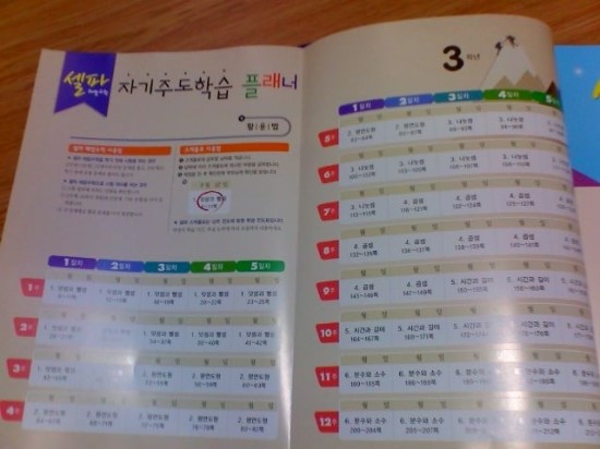 총12주로 구성되어 있고 매주에 1일차부터 5일차 플랜이 구체적으로 정리되어 있어서 아이들이 스스로 매일 학습할 분량을 확인하면서 공부할 수 있도록 만들어져 있습니다.