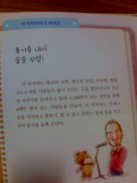실제 닉 부이치치의 모습이 담겨진 사진이 있어서 아이들에게 좀 더 가깝게 와 닿을 수 있는 것 같아요.