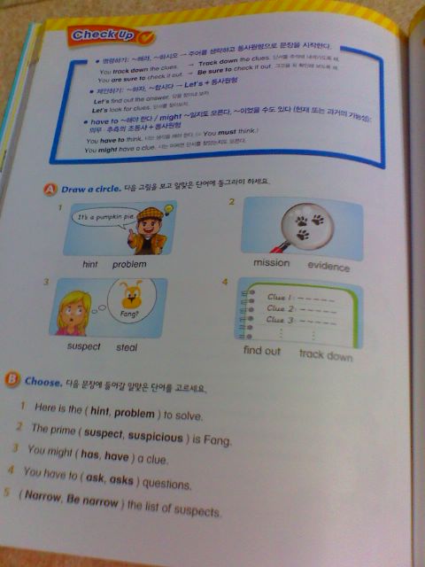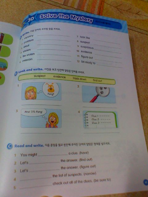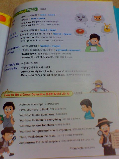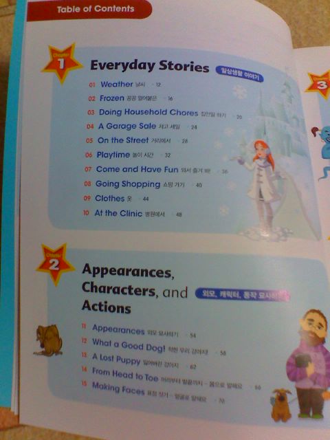 각 장마다 정리되어 있는 verb와 word가 총 20개 정도 되는 것 같아요. 하루에 한장은 조금 무리가 있을듯 하네요. (초등 저학년의 경우) 아이의 수준에 맞추어서 조금씩 익혀가면 좋을 것 같아요.