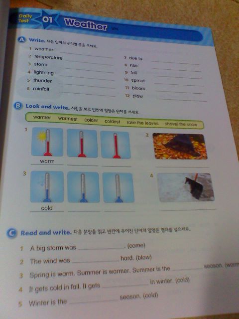 1장 날씨에 관한 어휘들이에요.