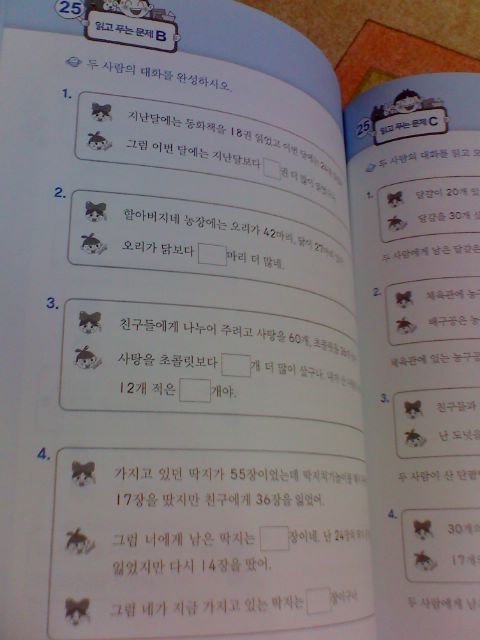 워크북 내용이에요. 각 장마다 분량은 1장(2쪽) 이에요.