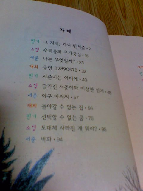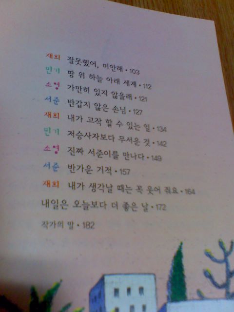 목차에서 보듯이 한 챕터마다 주인공 아이의 이야기와 심리를 중심으로 이야기를 풀어나가고 있어요.